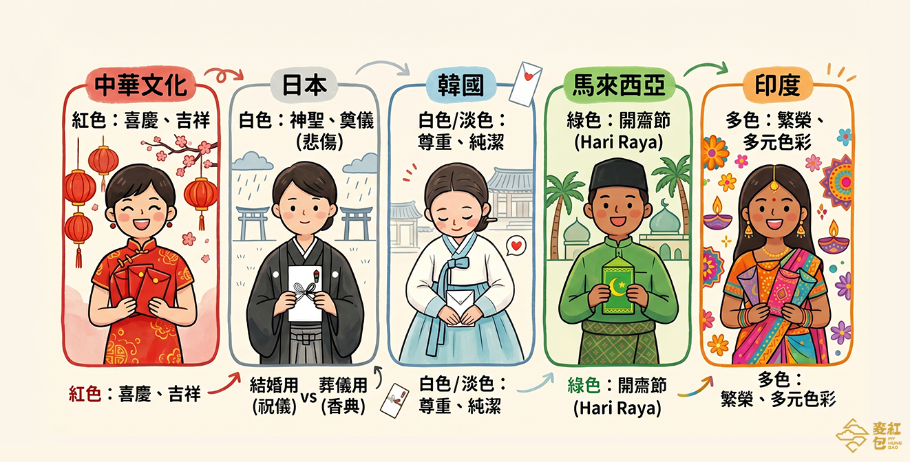 華人文化常見的紅包基本都是紅色的,但當我們將視野拉向全球,會發現各國對於紅包袋顏色有不同的解讀: